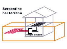 � Le serpentine nel terreno e i pali energetici sfruttano piuttosto l�energia solare che riscalda il terreno in superficie fino a pochi m di profondit�.